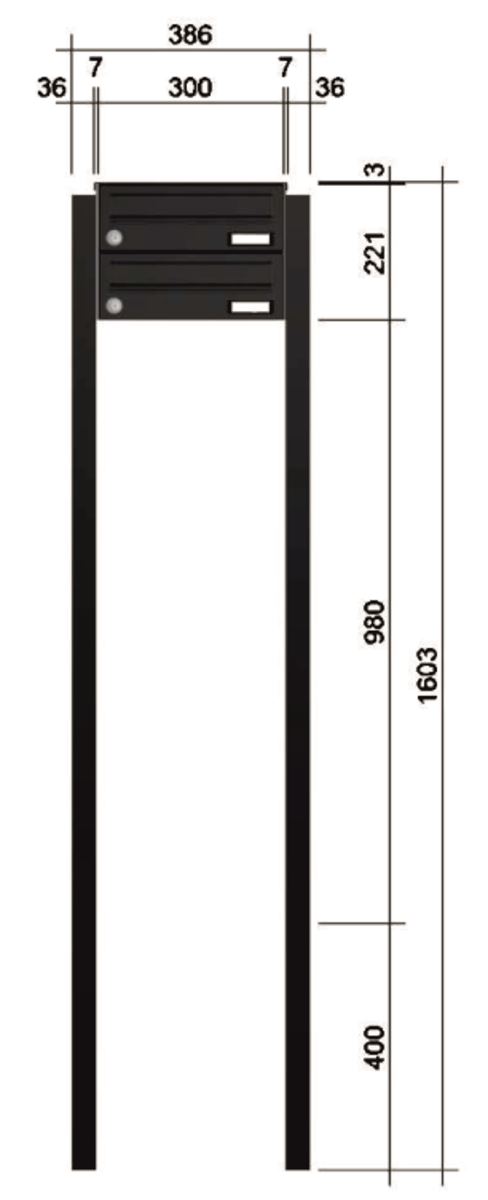 Vrijstaande brievenbus, dient in beton geplaatst te worden.