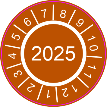 Vinyl keurstickers rond 30 mm, 100 stuks op vel met jaartal en 12 maanden met jaartal 2025