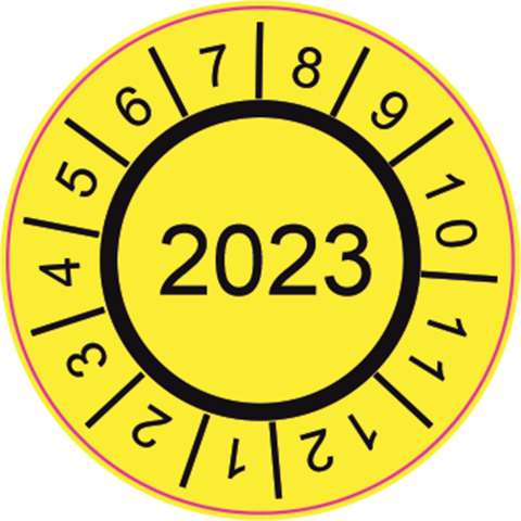 Vinyl keurstickers rond 30 mm, 250 stuks op vel met jaartal en 12 maanden met jaartal 2023