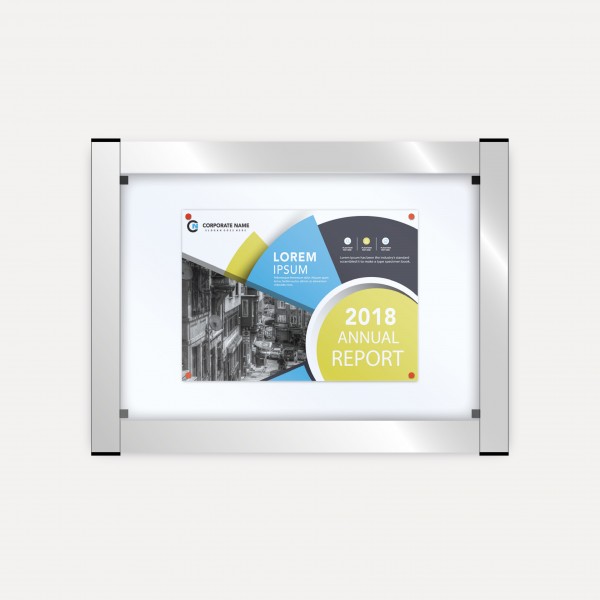 Een 40 mm dikke vitrine met een zeer karakteristieke vormgeving: de deur van 4 mm dik veiligheidsglas zit zonder sponning gemonteerd n het slot zit onzichtbaar aan de zijkant. De achterwand is van (wit) staal en dus magnetisch. Informatiekast wordt standaard geleverd in geanodiseerd aluminium, maar ook leverbaar in RAL 9005, 3003 of 8015 op aanvraag (zonder meerprijs, wel iets langere levertijd).